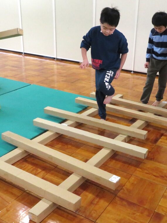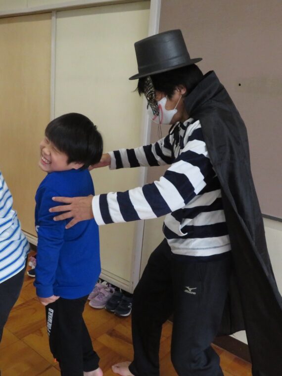 トピックス・News記事小学部2・3組では「2・3くみハンバーガーショップ」が開店中!大きいハンバーガーの具材や長いポテトを使い、めいっぱい体を動かして遊んでいます。児童達は自分も具材の一部になったり、ポテトの形を生かして”ポテト線路”を作ったりと、自分達で工夫しながら楽しく遊んでいました。また授業の途中には泥棒が登場!具材が盗まれないよう、全員で一致団結し、具材を守りきった児童達でした。