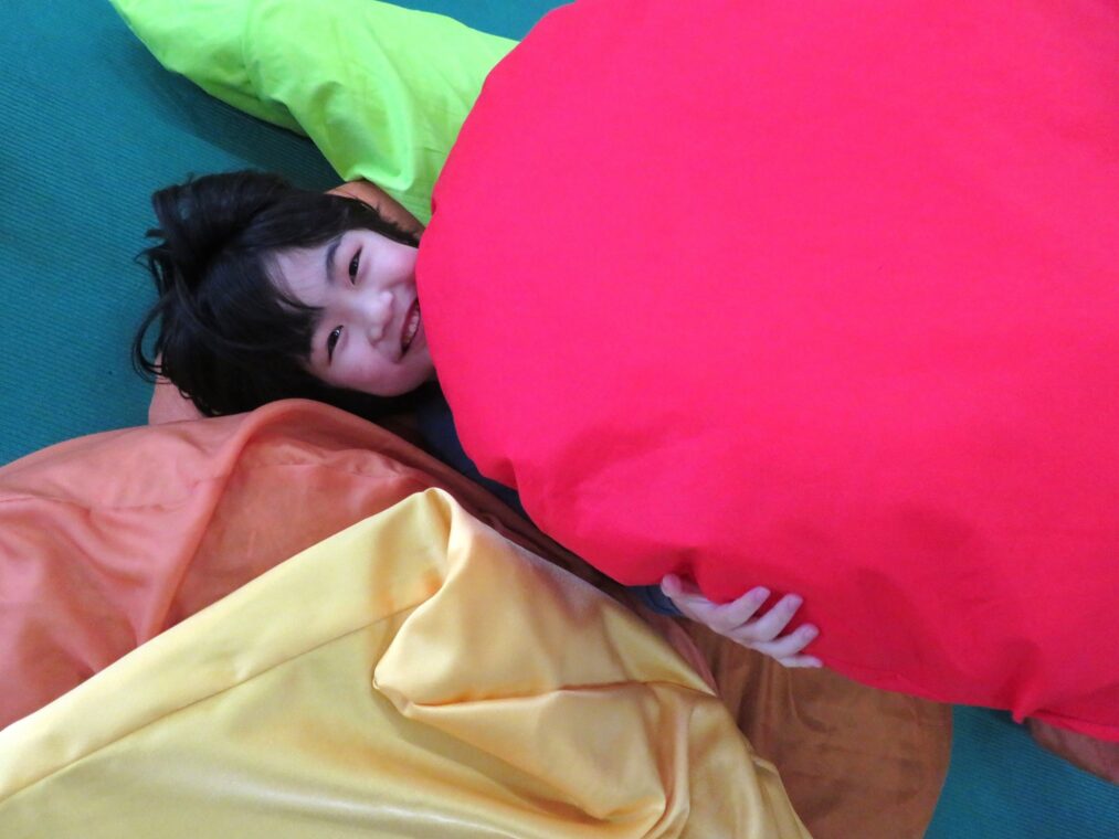 小学部2・3組では「2・3くみハンバーガーショップ」が開店中!大きいハンバーガーの具材や長いポテトを使い、めいっぱい体を動かして遊んでいます。児童達は自分も具材の一部になったり、ポテトの形を生かして”ポテト線路”を作ったりと、自分達で工夫しながら楽しく遊んでいました。また授業の途中には泥棒が登場!具材が盗まれないよう、全員で一致団結し、具材を守りきった児童達でした。