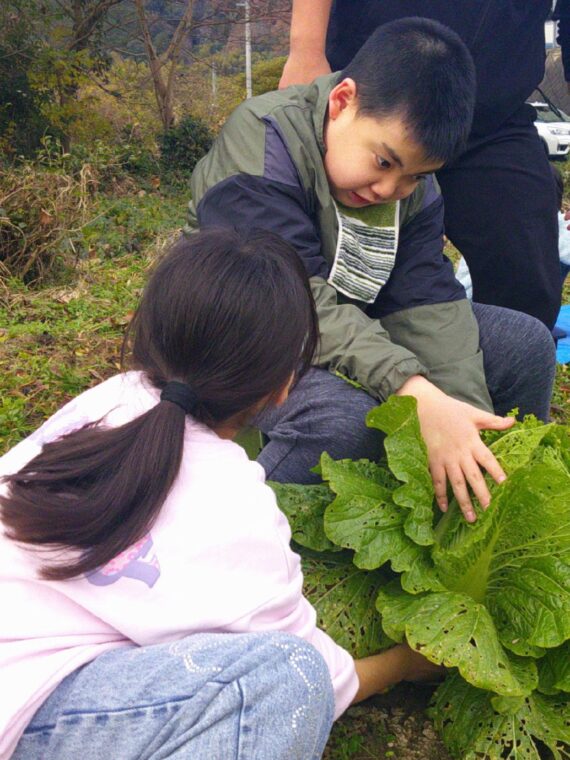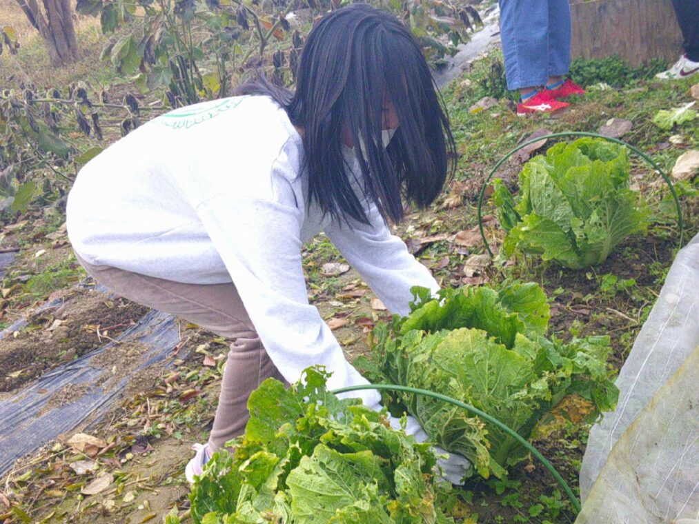 小学部8・9組の児童達は、育ててきた白菜の大きさに改めて驚きながら、力いっぱい引き抜いて収穫することができました。「収穫できて楽しかったです。」「食べるならお鍋がいいかなー?」と、たくさん話をしていた児童達でした。