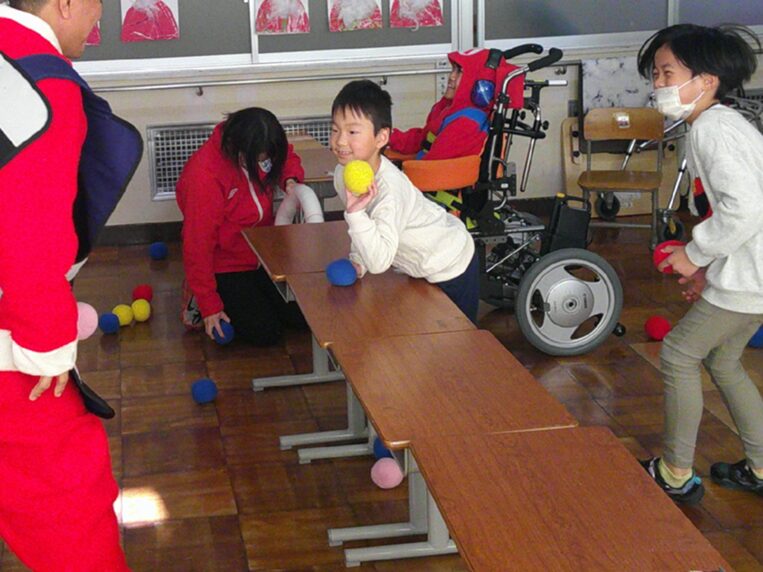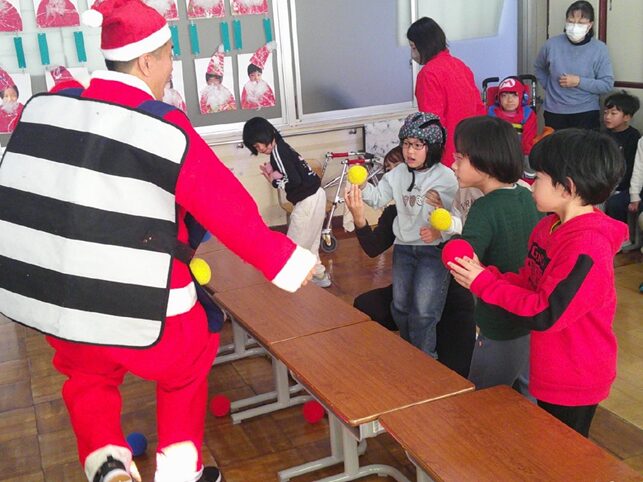 トピックス・News記事小学部6・7組は、「クリスマス会」を開きました。児童達のためにサンタクロースも登場!ペガーボールをしたり、じゃんけん列車をしたりしました。また自分達で司会も行い、「みんなで元気に歌いましょう!」と盛り上げ、全員ノリノリで歌ったり踊ったりしていました。楽しいクリスマス会になりましたね!