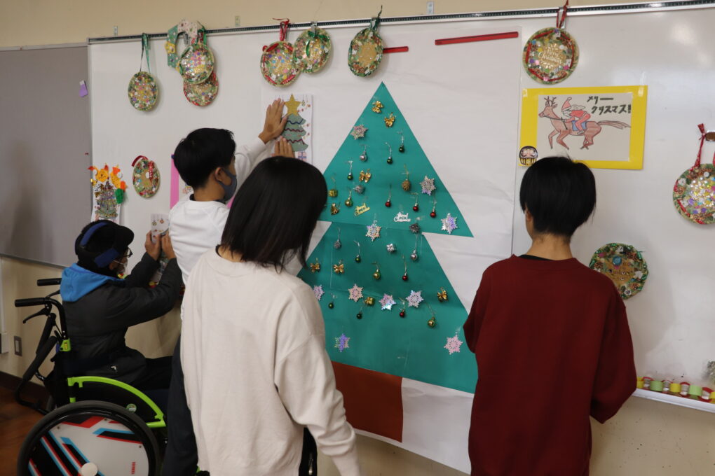 トピックス・News記事 中学部6、7組は、クリスマス会を実施しました。これまで教室の飾り作りや内容の企画等を生徒たちで考えて準備を進めてきました。
