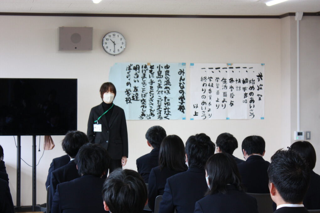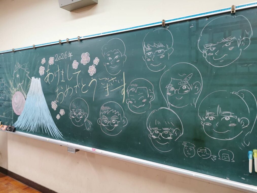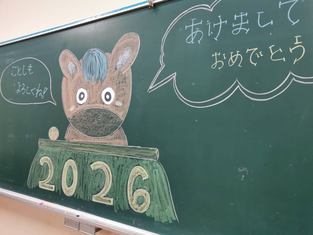 トピックス・News記事本日から3学期がスタートしました。新年を迎えまとめの学期でもある3学期ですが、担任団では生徒たちを安心安全で新たな気持ちで迎え入れようと環境整備を行い、中には黒板にメッセージを残し、多くの生徒たちが嬉しそうに眺めていました。式後のホームルームでは、午年にちなんで「きっとウマくいくよ。」という言葉を聞いたり今年の抱負等を述べていました。また、明日からの授業にも励んでいきましょう!