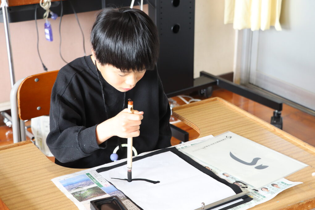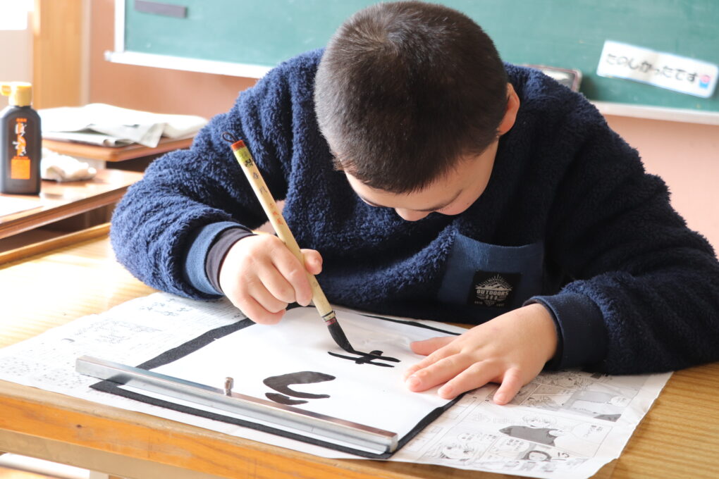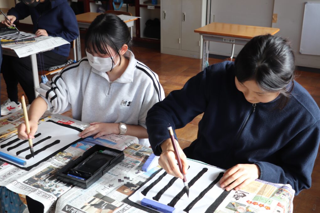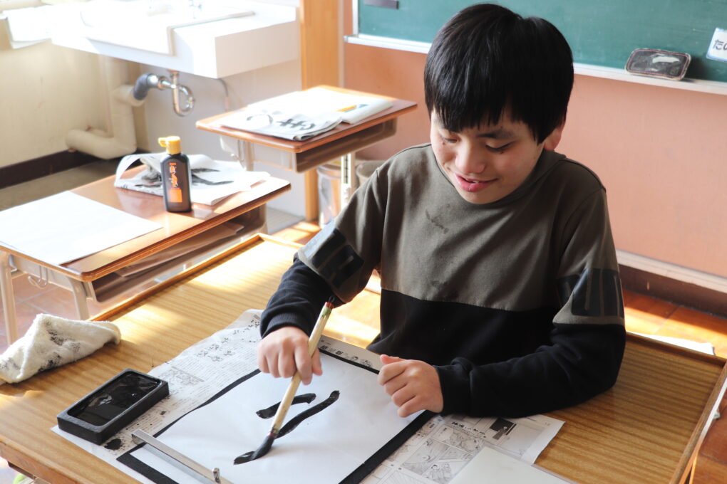 使い慣れない筆を使っての活動となりましたが、それぞれ半紙にダイナミックに表現をすることができました。書いた作品については、19日から本校で実施する書初め展に出展します。ぜひ来校いただき御覧ください。