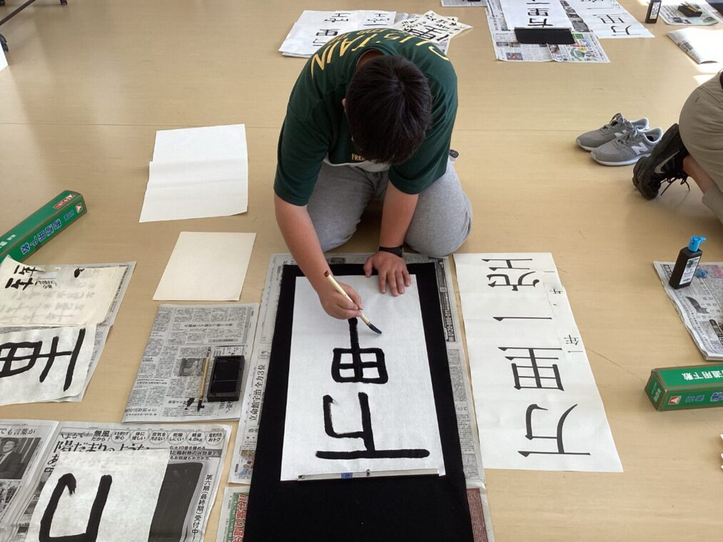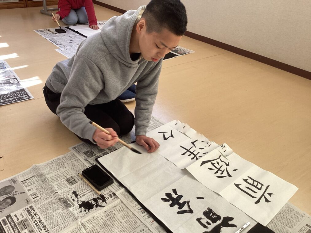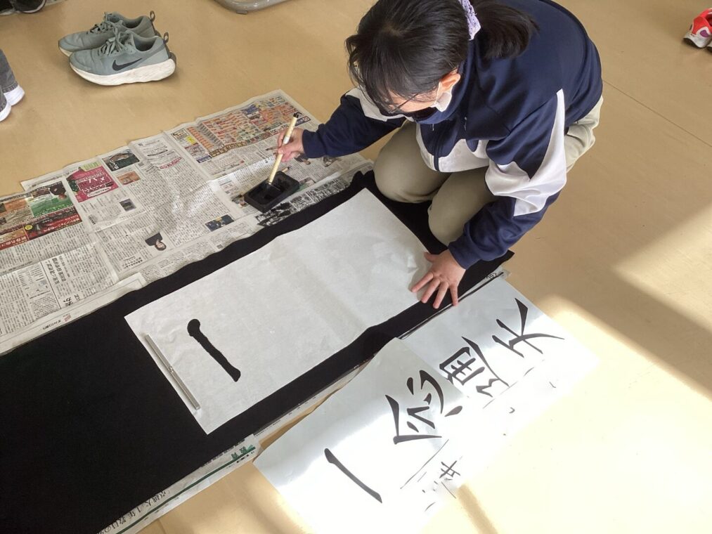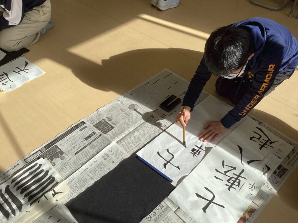 本日、高等部5、6組の生徒が書初めを行いました。一年の決意を字に込めようと自分で書きたい四字熟語を選択する生徒もいました。姿勢を整え、いざ清書へ。「万里一空」や「一念通天」等、今後も努力を続けていくという決意を力強く字に込めました。作品は、後日開催予定の「書初め展」に展示します。