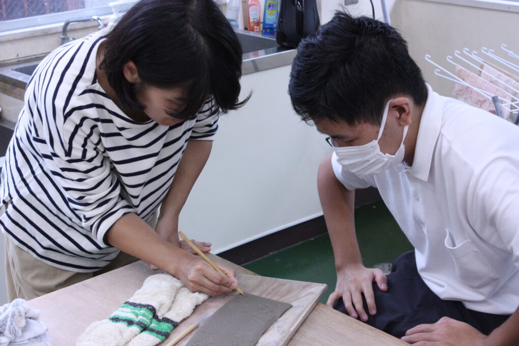昨年度、高等部ではやきものの産地である岐阜県多治見市が主催する全国やきもの甲子園に出展し、団体部門で銅賞を獲得しました。受賞から1年。今年度も制作に取り掛かりました。今年度のテーマは、「喜怒哀楽」。それぞれの感情に合わせたオノマトペをマグカップに表現しました。制作を担当した4名の生徒は、経験したことのない難易度の作業に、苦戦していましたが完成まで粘り強く取り組むことができました。先日、そのマグカップが焼き上がり1次審査に申込みました。結果は、後日HP上でお伝えする予定ですので、御期待ください。