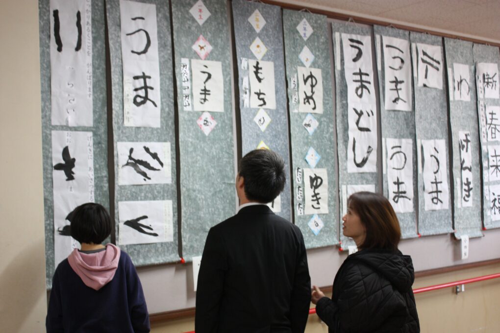トピックス・News記事本日、授業参観と校内販売会を実施しました。多くの保護者の方に来校いただき、同時に開催していた作品展と書初め展も鑑賞していただきました。校内販売会では、会場前に長蛇の列ができる程、大盛況となりました。寒さ厳しい中でしたが、来校いただいた保護者の皆様ありがとうございました。