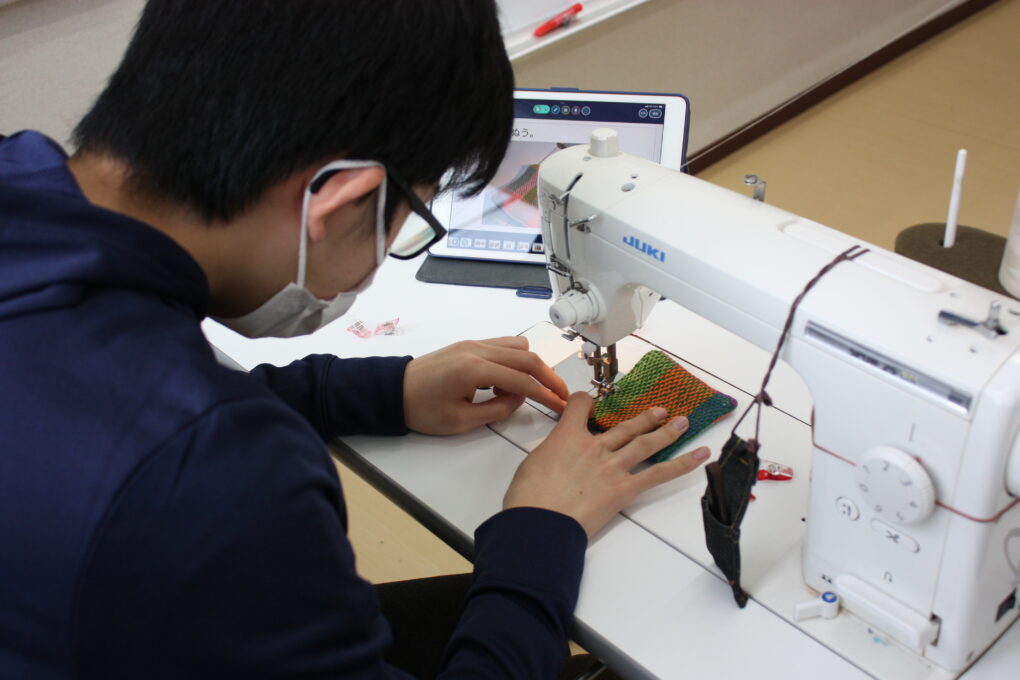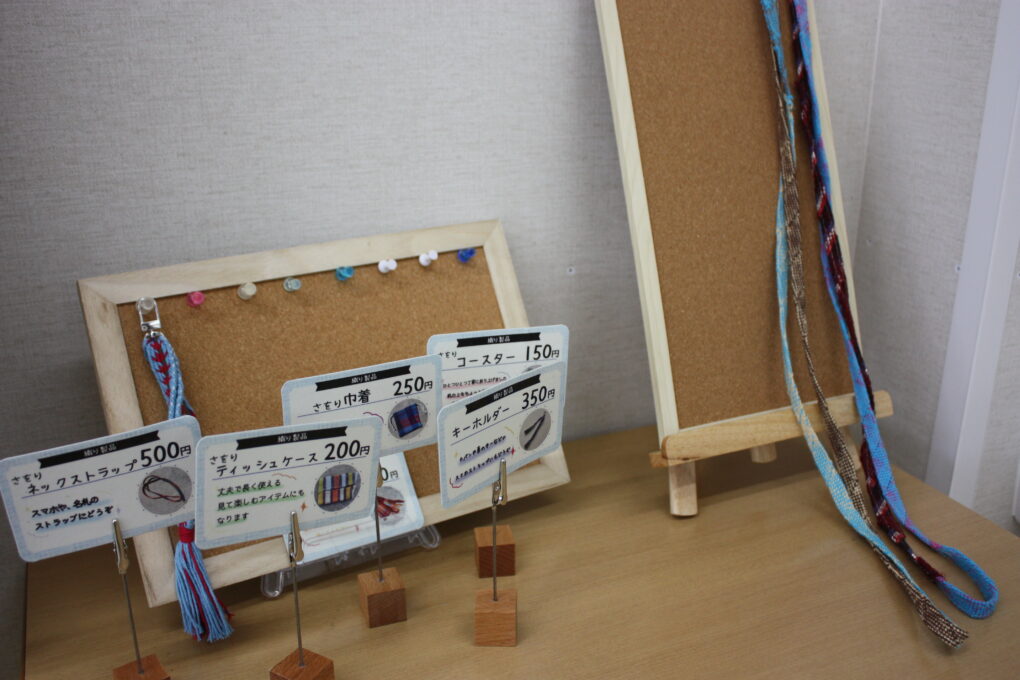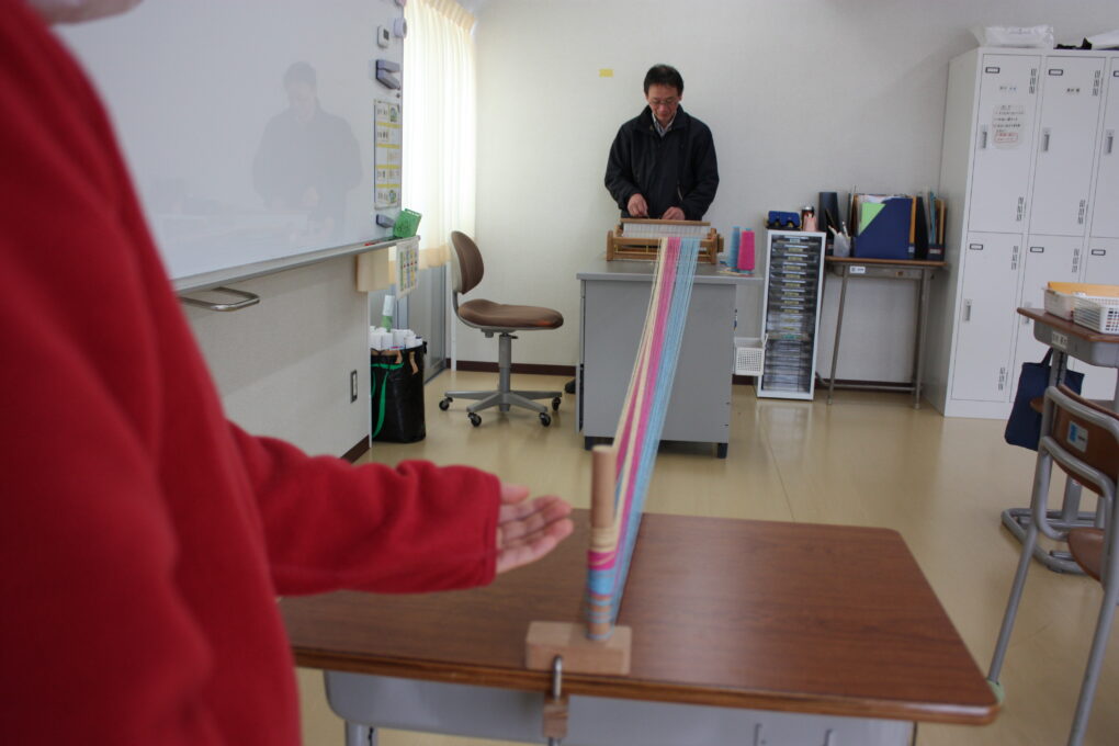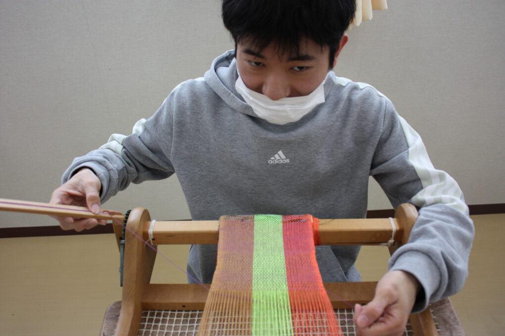 トピックス・News記事高等部5、6組では、さをり織りの作業を行っています。先日の校内販売会では、さをり織りの新製品をたくさん購入していただきありがとうございました。完売したということで、今後のモチベーションにつながっています。生徒たちは、今後の販売会に向け技術を高めようと集中して作業に取り組んでいます。生徒の中には、難易度の高い、織り機に縦糸を通す下準備も行っています。