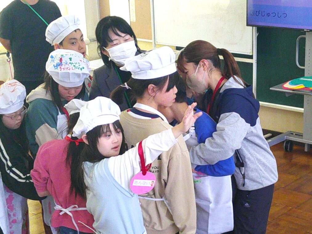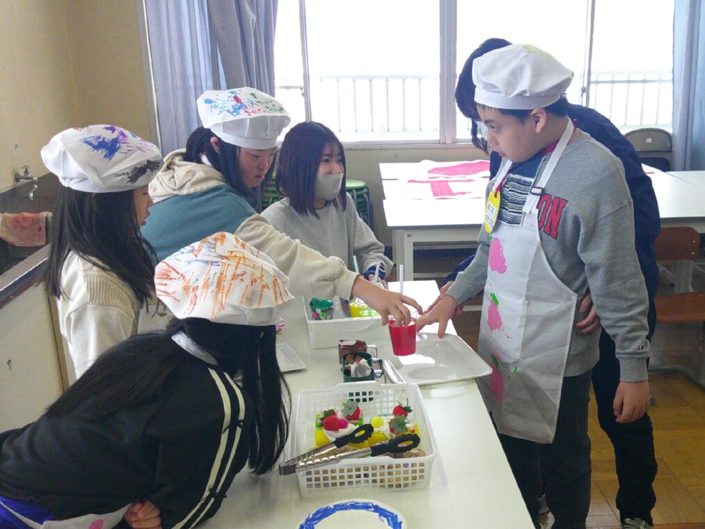 小学部8・9組は、先日(過去の記事はこちらから)お世話になったTHE 610 BASEの皆様を招いて、お礼の会を開きました。一人ずつお礼を伝えたあと、児童達による『おいしいカフェ』でおもてなし。円陣を組もう!と友達を誘い、気合も十分!カフェまで御案内したあとは、注文を聞いて手作りスイーツを出したり、おもてなしの発表を披露したりして、THE 610 BASEの皆様に喜んでいただくことができました。