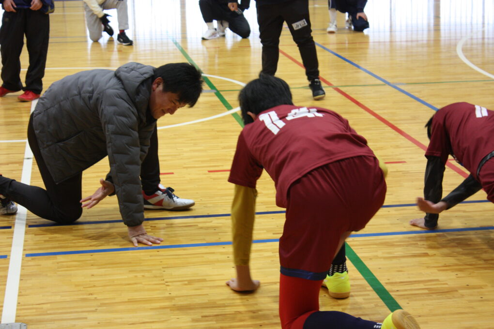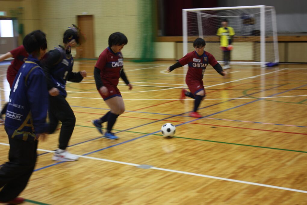 11日、包括連携協定を締結している福知山ユナイテッドと連携し、ユナイテッドカップ フットサル交流会を実施しました。この取組には、本校フットサル部をはじめ、京都府立与謝の海支援学校、京都府立舞鶴支援学校の生徒たち、ユナイテッド所属のサッカー部員も交えて、交流を行いました。自己紹介等を入れたウォーミングアップを行い和気藹々とした雰囲気の中、身体をほぐした後、迎えたゲームでは、他校連合チームとの対戦に気合いが入った様子で日々の練習で学んだ動きを試すことができました。中々思うようにいかないこともあり悔しさを見せる生徒もいましたが、仲間と励まし合いながら全力で競技を楽しむ部員たちでした。閉会式では、主催の方から「今後も様々なスポーツで、地域を盛り上げましょう!」というお言葉をいただきました。今後も、夢や目標をもった生徒たちが輝ける場を設定できるよう尽力していきます!この度は、福知山ユナイテッドの皆様、貴重な機会をありがとうございました。今後ともよろしくお願いいたします。