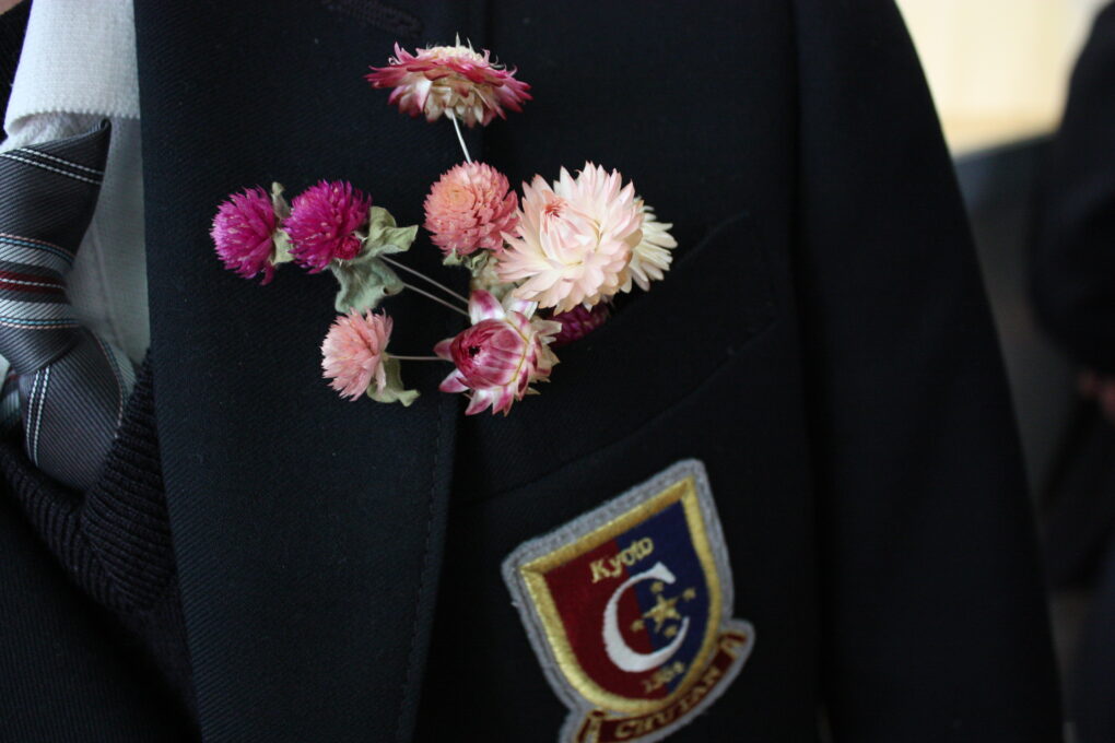 迎えた、当日。3年生は親しみのある制服に袖を通し、実行委員が作成したコサージュを胸に付けて会場へ。
