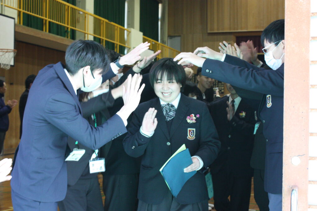 名残惜しさが残る中、退場へ。花道を通ってゆく3年生は、どこか誇らしく見えました。