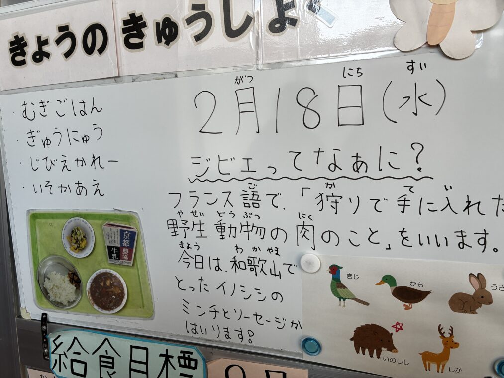トピックス・News記事本日、学校給食への関西広域連合域内農林水産物の提供事業を活用して、ジビエを使用し「ジビエカレー」を提供しました。児童生徒たちは、食べ慣れている豚肉や鶏肉とは違った食感や味わいを感じながら美味しくいただきました。給食の前には、ジビエについての理解を深めようと高等部生徒対象に講義を行いました。