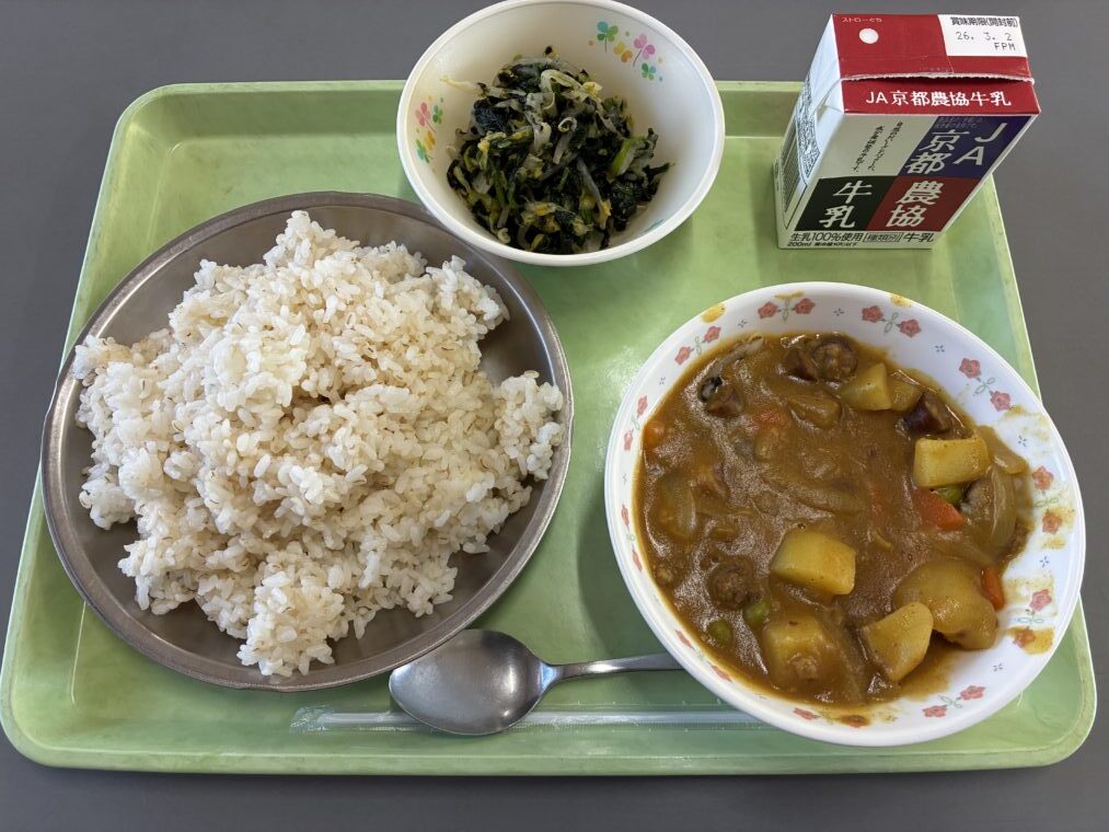 本日、学校給食への関西広域連合域内農林水産物の提供事業を活用して、ジビエを使用し「ジビエカレー」を提供しました。児童生徒たちは、食べ慣れている豚肉や鶏肉とは違った食感や味わいを感じながら美味しくいただきました。給食の前には、ジビエについての理解を深めようと高等部生徒対象に講義を行いました。