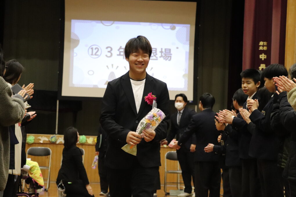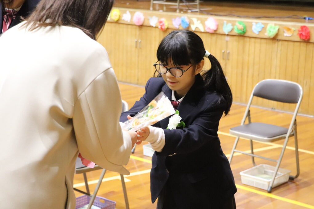 保護者の方から3年生へ花のプレゼント。3年生達はとても嬉しそうに花を受け取っていました。保護者の皆様、御協力いただき本当にありがとうございました。