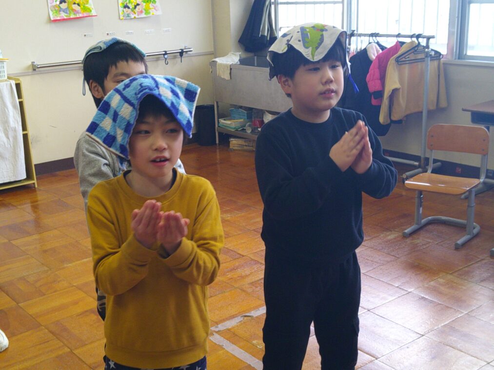 トピックス・News記事小学部2組は、『身体の動き』『人間関係の形成』等の項目の内容で、ダンスに取り組みました。手本の動きを見ながら、様々な振付を踊っています。また、友達や先生と手をつないで回ったり、股をくぐったりと、関わり合いながら笑顔で取り組んでいた児童達でした。