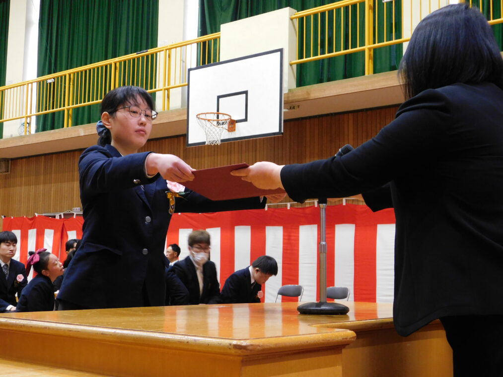 トピックス・News記事 本日、3月6日(金)高等部卒業証書授与式を執り行いました。18名の3年生は練習通り、いや練習以上の力を発揮し堂々とした姿で証書を受け取りました。君たちの凛々しい姿は、後ろで見ていた1、2年生の心に残っているはずです。これまで学校の中心となって様々なことに取り組んでくれてありがとう!立派な社会人になることに期待し、いつまでも応援しています。