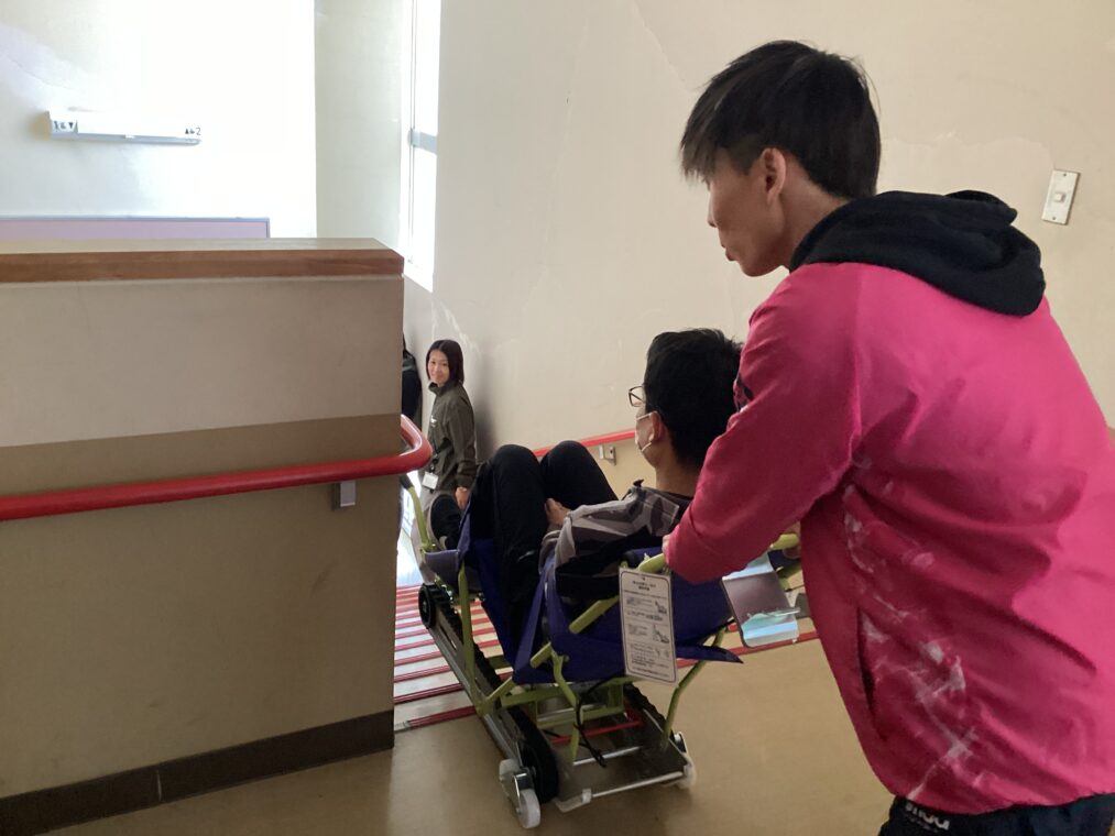 ☆教職員の研修本日、新転任の先生方を対象に自立活動部からだ専任による研修会を実施しました。肢体不自由児童生徒を介助する上で留意するポイントや安心安全な支援方法等について研修しました。その後、被災時の避難具として備え付けている「キャリダン」の使用方法についても確認をしました。この研修を、今後の指導に生かしていきましょう!