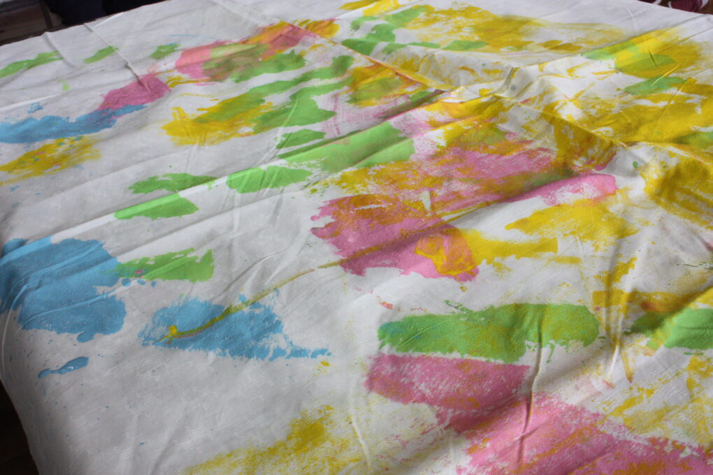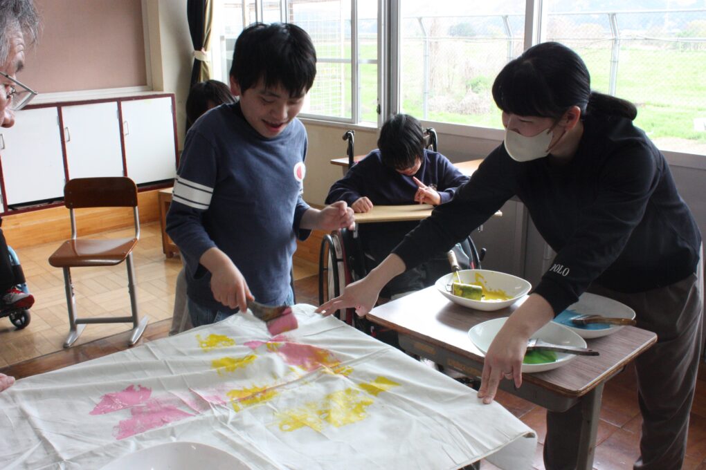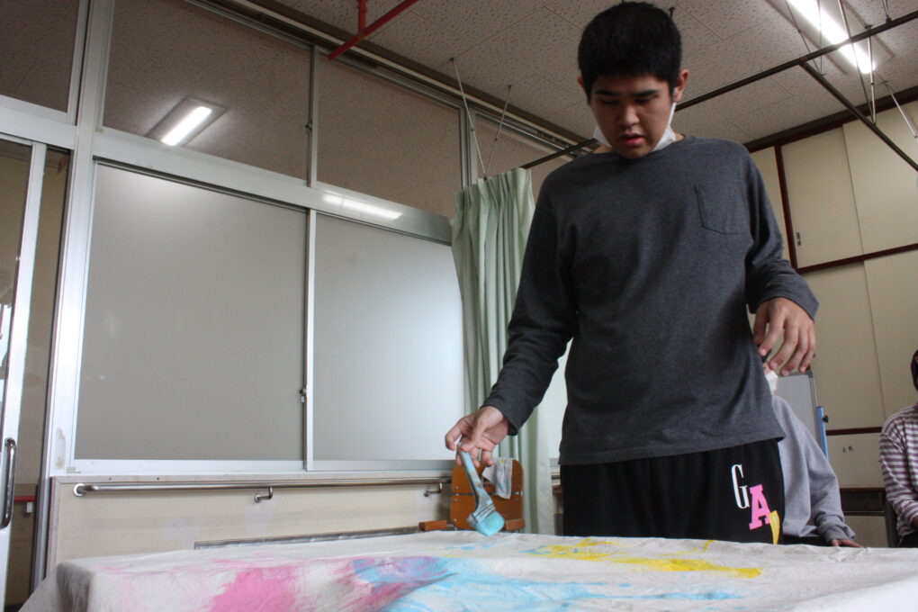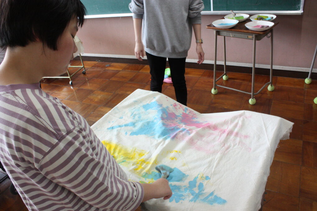 トピックス・News記事今年度の体育祭は、6月6日に実施します。体育祭に向け、高等部1,2組では生活単元学習の中で、演技で使用するグッズの作成をしました。4色ある中から好きな色を選び、刷毛やローラーを使ってダイナミックに色を付けました。制作の前には、前回の体育祭演技の動画を鑑賞し、体育祭に向けた意識を高めています。今後、本番に向けた学部の練習の様子も投稿していく予定です!