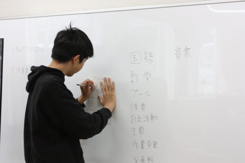 高等部6組では、1学期の目標を定めるためにキャリアパスポートの記入をしました。記入前に、高等部で行う授業を確認してイメージを膨らませました。「国語で漢字を書くのを頑張りたい。」や「体育祭を成功させたい。」等、新しい環境の中でも「目標をもって取り組む」という決意が伺えました。有言実行できるように、励みましょう!
