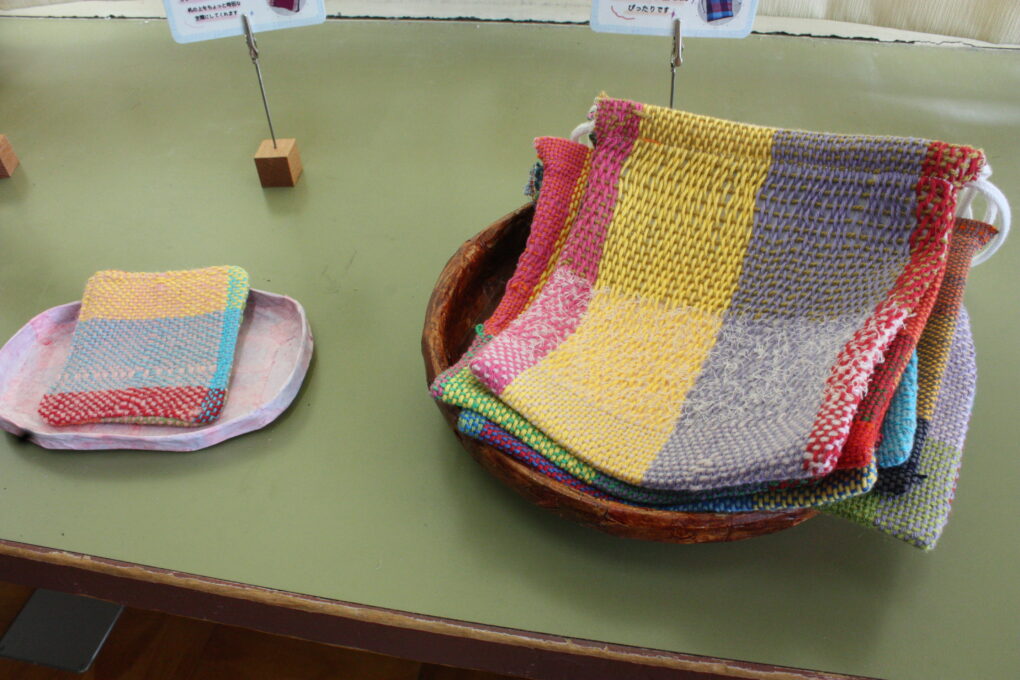 今年度高等部5、6組の作業学習は、さをり織りと窯業の班に分かれて行っています。さをり織りは、専用の織り機を使い丁寧に糸を通しストラップや織布等を制作しています。窯業は、昨年販売会で大好評をいただいた野菜小皿を中心に小皿の制作を行っています。1年生も、少しでも早く工程を覚えようと指導者に尋ね、意欲的に作業に取り組んでいます。回を重ねるごとに手付きがよくなってきています。今後、どのような製品に仕上がるか楽しみですね。