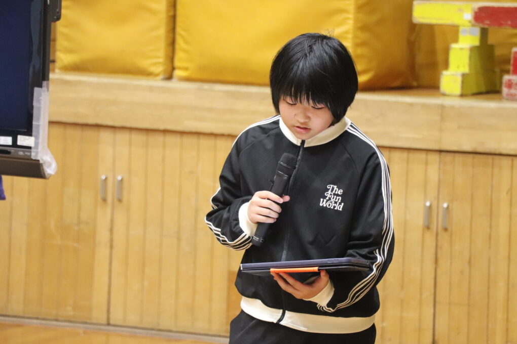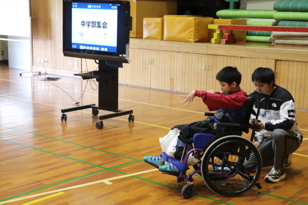 中学部のリーダー長の進行の元、1年生や転入生の自己紹介を行いました。自己紹介では恥ずかしそうにしながらも、名前や好きな食べ物、中学部で頑張りたいこと等をみんなに伝わるように発表することができました。