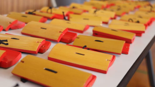 11月に実施する芸術鑑賞会の本公演に向けてワークショップを行いました。沖縄伝統組踊「子の会」の皆さんにお世話になり、沖縄伝統組踊について、楽器の紹介や琉球舞踊の鑑賞や体験を行いました。沖縄の方言を学んだり、四つ竹を鳴らしたりして、体験的...