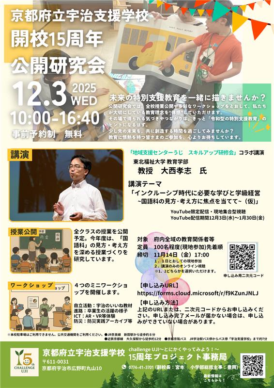 全校NEWS令和7年度宇治支援学校 公開研究会(令和7年12月3日(水))のお知らせです。