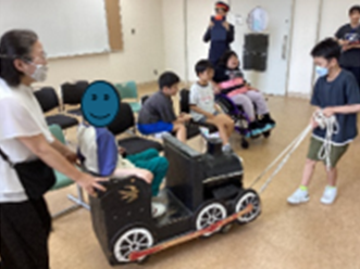 遊びの指導「校外学習に行こう」の単元では、公共施設の役割や利用方法が分かり、それを伝えたり表現したりしようとすることを目標にして学習しています。
