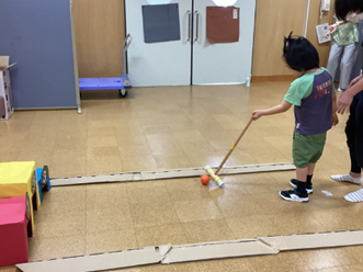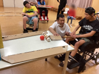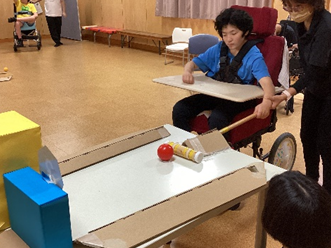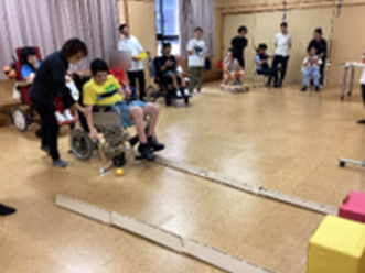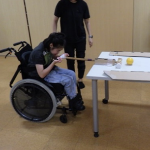 中学部1.2年1組、1.2年2組、3年1組では、生活単元学習「レッツスポーツ」でゲートボールに取り組んでいます。この授業では、グループに分かれて打ち方の練習をしたり、グループ対抗で対戦したり、より高い得点を取れるよう頑張っています。授業の最後には、グループごとに「今日のMVP!」を選び、その日に活躍した友達をみんなに紹介し称えあっています。チームメイトや友達を応援したり、勝ち負けを意識したり、スポーツならではの楽しさや喜びをたくさん感じてほしいと思います。