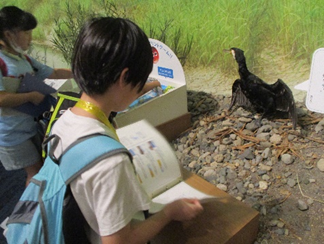 事前学習では、施設の概要や水辺の生き物について学びました。また、本番当日を想定し、グループに分かれて、博物館を模したブースに配置された「さわらないもの」や「やさしくさわってよいもの」等の指示に合わせて見たり触ったりしながら、体験的に見学の練習も行いました。