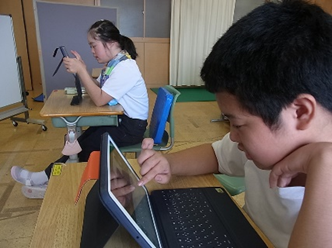 2学期初めの生活単元学習「ICTを使ってみよう」の学習では、情報モラルについて学んだり、動画の編集の仕方を知り、一人ずつ自己紹介動画を作ったりしました。そして、 単元の最後には、その動画を学年で発表し合いました。文字や音楽を入れたり、カットや早送りをしたり、エフェクトを効果的に入れたりと、様々な編集方法を駆使して個性豊かな自己紹介動画が出来上がりました。さすが生まれた時から情報機器が身近にある子ども達です。習得の速さに驚かされました。