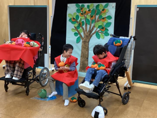本日発表の学年では、緊張しながらもこれまで学習してきた成果を来校された多くの方々に見ていただくことができました。体験型の取組や販売では、地域のお客様や下学年の児童生徒へ丁寧な説明を行い、また、体験しやすいようにサポートをしていました。高等部くらし職業コース2年生では、広島への修学旅行をとおして感じた「平和の大切さ」について、一人ひとりの言葉で真剣に伝えていました。『HEIWAの鐘』の合唱では平和への気持ちが込められた歌声が会場全体に響きました。
