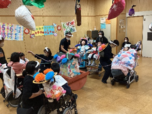 小学部は、みんなでお祭りをしたり、お話遊びでオオカミに見つからないよう音楽に合わせてこひつじ達がかくれんぼをしたりしました。