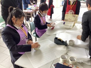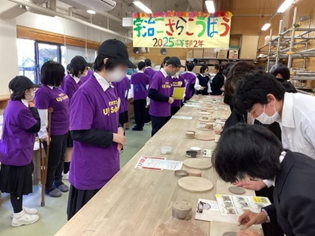 高等部くらし地域コース1年生では、作業学習で制作した窯業製品や、農園芸の授業で育てたネギやサシェを販売しました。窯業製品を求め、長蛇の列ができていました。また、2年生では、窯業体験でコースター作りを行い、こちらも大盛況でした。くらし職業コース3年生は、自分達で絵コンテから音楽、ダンス、映像等全て準備をして体育館で観客と一体感のある劇の発表をしました。