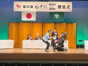 11月22日(土)に、第35回紫式部市民文化賞贈呈式が行われ、高等部くらし健康コースを代表して、3年生の住田彩七さんが参加しました。