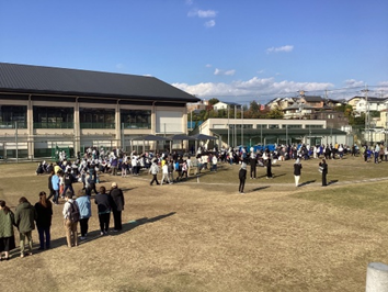 11月21日(金)に地震を発端とした火災による避難訓練を実施しました。この訓練では、地震後に北棟2階で火災が発生したことを想定し、それぞれの場所から安全な経路で屋外に避難しました。また、避難途中に2度目の揺れが起こる設定の中、とても落ち着いて避難をしていました。毎月の地震対応訓練の経験を重ねることで、地震警報音にも驚かず、見通しをもって行動をしています。また、この日はPTAも15周年プロジェクトコラボ企画として防災交流会を実施しました。静かに避難する児童生徒の様子を目のあたりにされ、「こんなに落ち着いて避難できるなんてすごいです!」と嬉しいお言葉をいただきました。