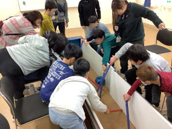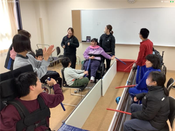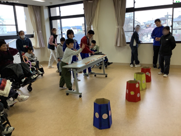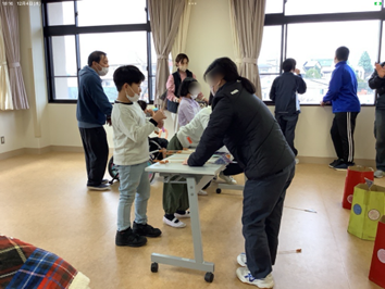 12月の『昼休み交流』 トピックス・News記事 2025.12.23 全校の児童生徒が学部や学年を越えて関わりが深められるように『昼休み交流』を行っています。12月は、中学部・高等部が授業で使用した「棒サッカー」、「トゥホ(韓国の遊び)」を持ち寄って、交流を楽しみました。まず初めに、生徒が遊び方を伝え、その後は友達同士で伝え合いながら大盛り上がり!最後は、高等部生徒と小学部児童が、一緒に片付けをする等、微笑ましい様子も見られました。 Post Views: 45