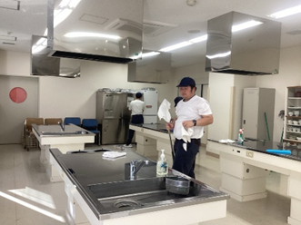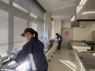 高等部の作業学習「ビルメンテナンス」では、地域清掃に加え、校内からの依頼を受けて行う「請負清掃」にも取り組んでいます。 学期末となった先週は、依頼を受けた「調理室」や「プレイルーム」等の清掃を実施しました。調理室では、シンクやコンロ、床の隅々まで、生徒たちが自ら汚れを見つけ、手際よく丁寧に磨き上げてくれました。 その結果、空間は明るく、見違えるほど美しくなりました。生徒の皆さん、ありがとう!!