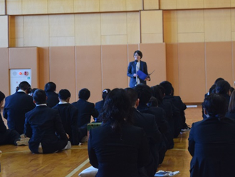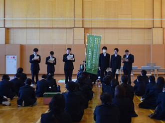 また生徒会からは、2学期の活動の振り返りと交通安全標語の紹介があり、思いのこもった言葉が伝えられました。
