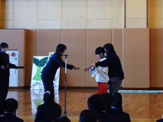 式後には、各種大会や児童画展、市民文化賞等で活躍した生徒への伝達表彰も行われ、児童生徒のチャレンジや努力の成果を仲間と分かち合いました。