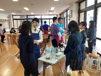 2学期は立命館宇治高校の「興風祭」において、ラオス産コーヒーの販売を一緒に行いました。今回はその取り組みの一環として、カフェJOYを会場に、ラオスのコーヒーを試飲していただきながら、その魅力を紹介する活動を行いました。