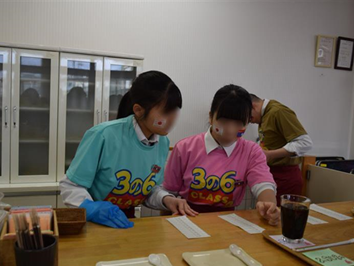 当日は、店内入口にラオス語のあいさつを掲示し、壁面の装飾もラオスをイメージしたものにするなど、会場づくりにも工夫を凝らしました。また、両校の生徒が協力し、頬にラオス国旗のペイントを施したり、ラオス国旗をモチーフにしたオリジナル名札を身につけて接客を行ったりと、明るく温かい雰囲気をつくってくれました。