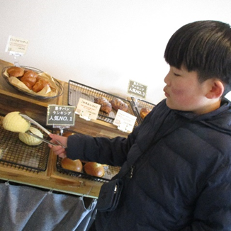 練習を重ね迎えた当日、「キリン堂」さんでは、ご家庭からの「ご用命」に使命感をもって商品を探して購入する姿が、また「らぱんだ」さんでは、たくさん並ぶおいしそうなパンに目を輝かせながら買う物を選ぶ姿が印象的でした。