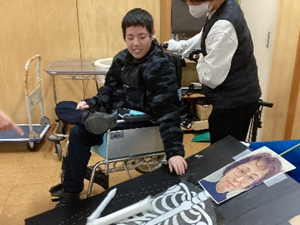 中学部 生活単元学習「からだスタディ」 トピックス・News記事 2026.02.04 1月から中学部1・2年1組、1・2年2組、3年1組では、生活単元学習「からだスタディ~骨と筋肉について学ぼう~」に取り組んでいます。この単元では、健康な生活に必要なことを知る、身体の部位を示す名称に親しむ、身体つくりに関心を向けること等をねらいにして、音楽に合わせて身体を動かし、クイズやパズル等をとおして体験的に楽しみながら骨や筋肉についての学習に取り組んでいます。 Post Views: 63