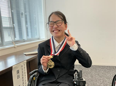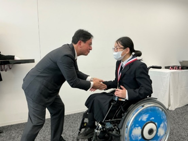 表彰式では、前川教育長から記念品を受け取り、「大きな大会に出たことが貴重な経験になりました。今後も頑張ります。」と支えてくれた方々への感謝と今後の抱負を述べました。