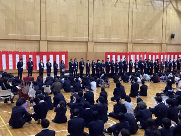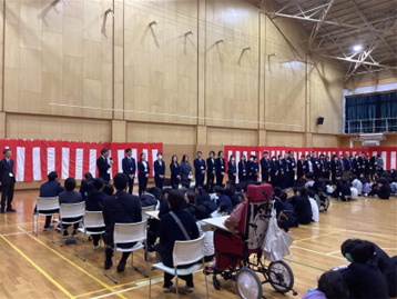 令和8年度着任式・1学期始業式が実施されました。新たに迎えた先生方の着任式を行い、令和8年度がスタートしました。始業式では、星川校長から「何か一つ誰かのためになると思うことに取り組んでほしい。自分のためになると思うことにチャレンジしてほしい。」とのお話がありました。また、小学部の児童へは「毎日元気に学校に来て、友達となかよくいっぱい遊んでほしい」、中学部の生徒へは「仲間とともに様々なことにチャレンジをしてほしい」、高等部の生徒には「社会に出るための勉強や実習のなかで、苦手なことにぶつかるだろうけれど、やってみようという姿勢を大事にしてほしい。」とお話がありました。子どもたちが社会で自立し社会参加できる力を付けられるよう教職員一同、全力で教育を進めて参ります。