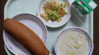 今日の給食は「冬のクリームシチュー」です。冬に食べたい温まる料理のひとつに、クリームシチューがあります。今日は冬に旬を迎える「かぶ」、「カリフラワー」、「白菜」を使ってシチューが作られています。旬の野菜には、栄養が豊富に含まれています。...