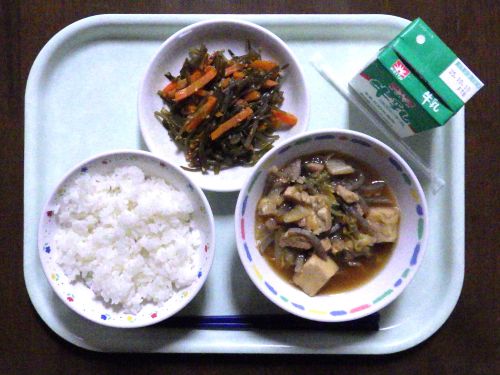 鶏すき 牛乳 ごはん 茎わかめのきんぴら