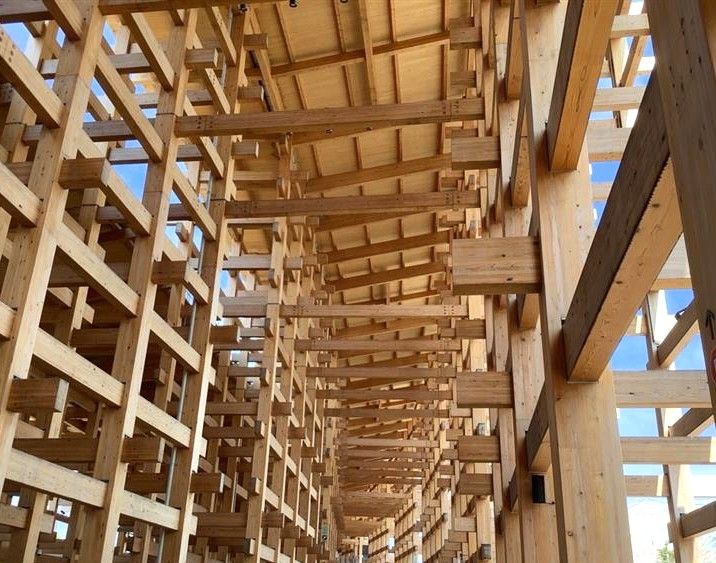 最後に、大屋根リングを半周しました。大屋根リングを歩きながら、いろいろな国のパビリオンや、自分たちが先ほどまでいた場所を見て、その高さや景観に驚く声が聞こえてきました。