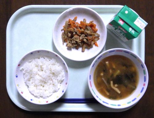 さつまいものみそ汁 牛乳 ごはん ちくわとごぼうのきんぴら